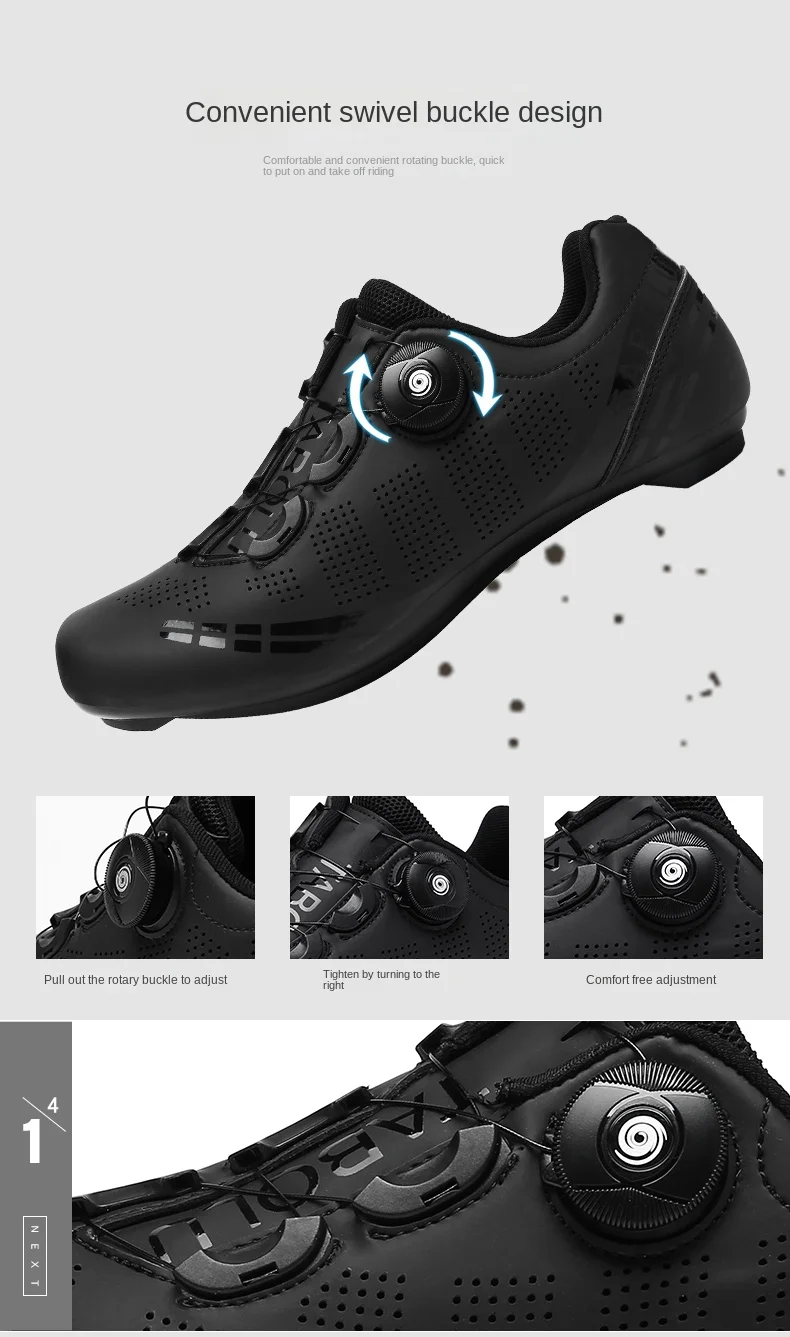 【Breathability and Stability】The unibody construction and leather upper improve the breathability and stability of cycling shoes, provide you with the most comfortable wearing experience. Road Cycing Shoes with rotating buckle designs, quick adjustment, easy to wear and take off, and offer the greatest clamping power and security.