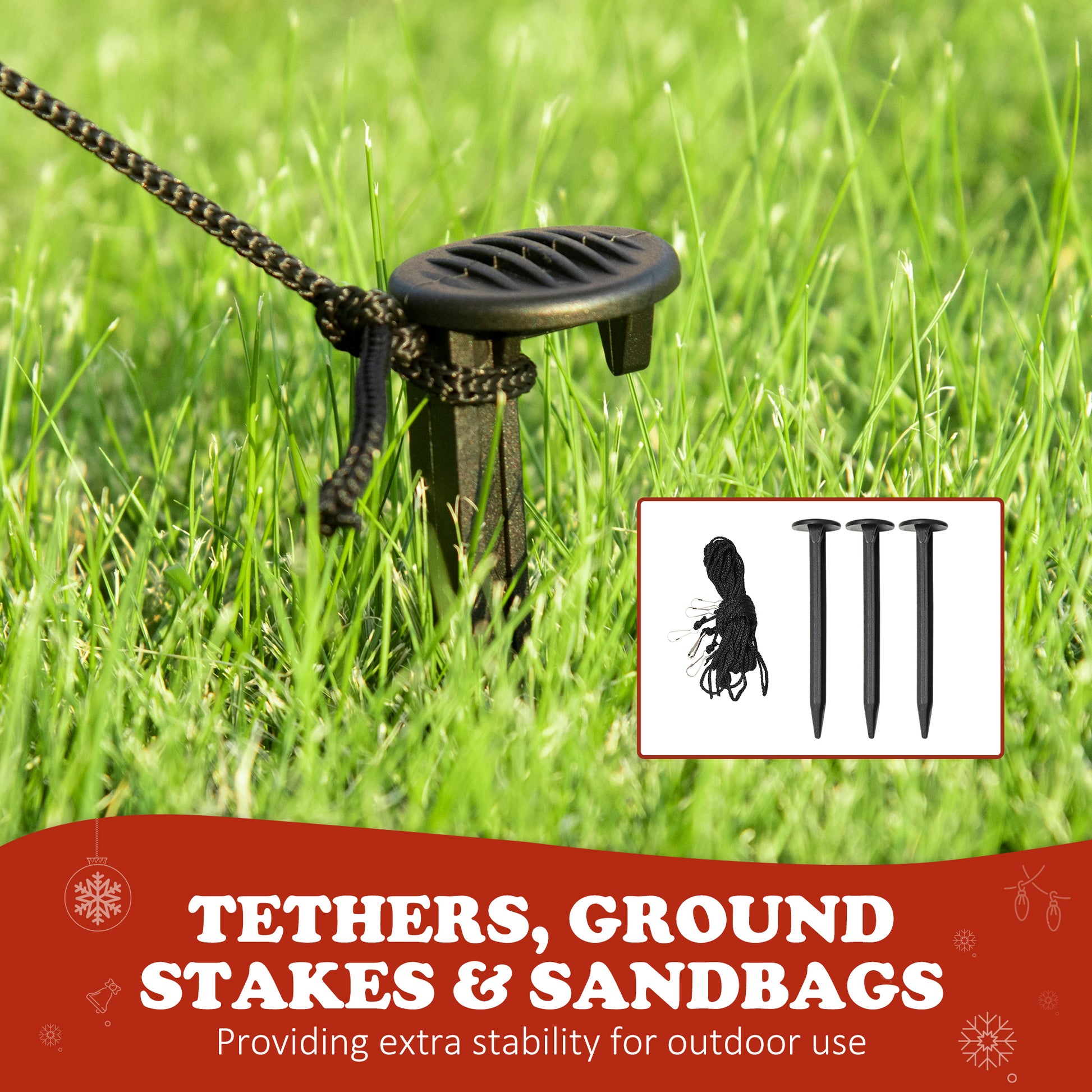 It inflates quickly, stays stable even on breezy nights thanks to included stakes, ropes, and sandbags, and deflates easily for storage after the holidays.
