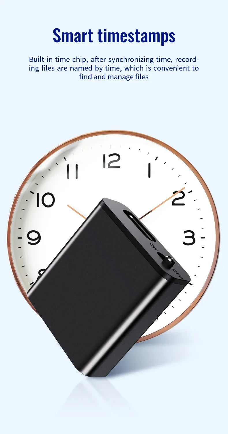 Smart timestamp: Built in time chip, after synchronizing the time, the recording file is named after the time, making it easy to find and manage files